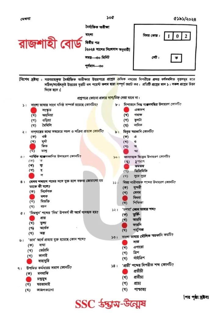 SSC MCQ Solve Rajshahi 2026 – বাংলা ২য় পত্র সম্পূর্ণ সমাধান